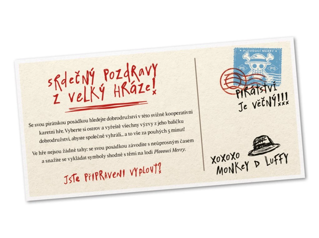 Se svou pirátskou posádkou hledejte dobrodružství v této svižné kooperativní karetní hře. Vyberte si ostrov a vyřešte všechny výzvy z jeho balíčku dobrodružství, abyste společně vyhráli… a to vše za pouhých 5 minut! Ve hře nejsou žádné tahy: se svou posádkou závodíte s neúprosným časem a snažíte se vykládat symboly shodně s těmi na lodi Plovoucí Merry. Jste připraveni vyplout?