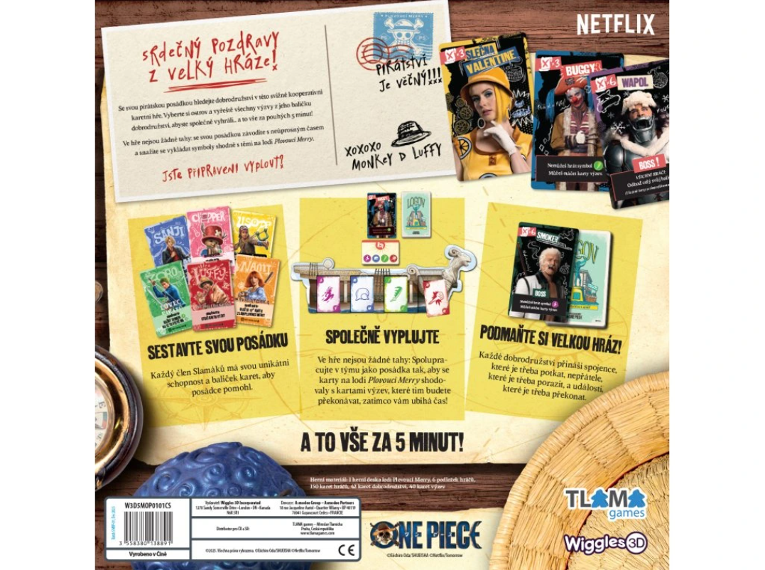 5minutovka: One Piece je kooperativní hra v reálném čase, ve které hráči sestavují pirátskou posádku a závodí s časem, aby společně dokončili dobrodružství na vybraném ostrově dříve, než vyprší čas. Inspirovaná hranou adaptací One Piece od Netflixu, rozvíjí tato hra principy hry 5-Minute Dungeon: hráči spolupracují při přiřazování symbolů pomocí karet ve své ruce, ale navíc musí dodržovat pořadí symbolů, které vytvářejí tím, že vkládají karty na herní desku Plovoucí Merry.