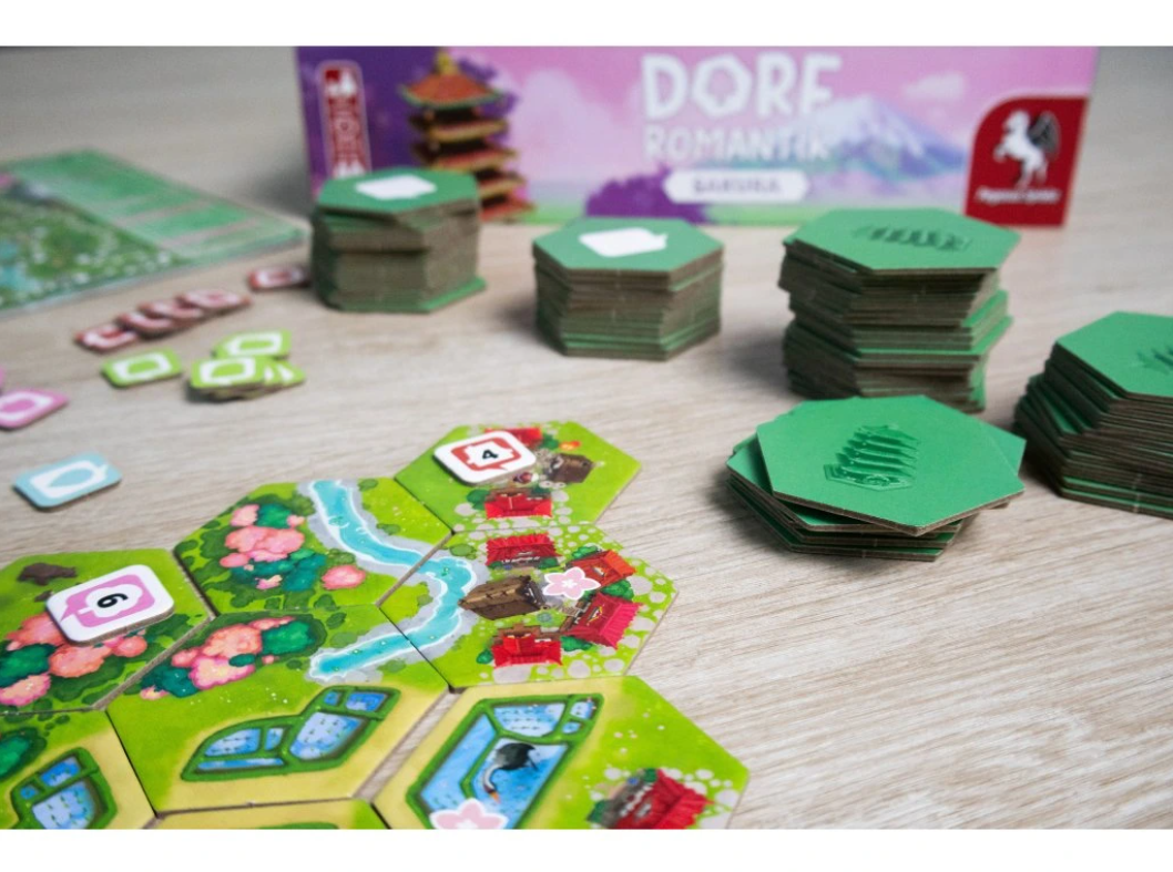 Dorfromantik: Sakura je kooperativní desková hra, ve které budete ze šestihranných (hexových) destiček sestavovat malebnou a poklidnou japonskou krajinku a pokusíte se plnit přání tamních obyvatel v podobě vybudovaných rýžových polí, vesnic a třešní, řek a cest určitého rozsahu. Zároveň získáte body za výstavbu co nejdelší cesty a řeky. Vlajky vám přinesou body v uzavřených oblastech. Čím více bodů získáte, tím více nových kousků krajiny objevíte. Příště je navíc můžete přidat do hry!